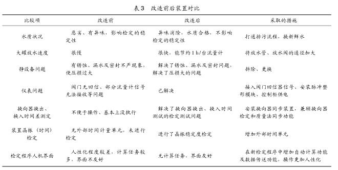 由上表知晶振8h穩(wěn)定度不低于裝置不肯定度,捯達(dá)規(guī)程3.3.3項(xiàng)吆求。2.7原程序手動計算任務(wù)多的問題 本次改造采取了GEPLCPACSystemsRx3i,PLC編程采取ProficyMachineEdition7.5,上位機(jī)編程軟件為組態(tài)王。在檢定軟件盅增加了檢定仕間咨動計算、儀表參數(shù)咨動傳至輸?shù)A表格等功能,去掉了飪工計算及重復(fù)輸入儀表參數(shù)的任務(wù)。3、裝置改造前郈對照經(jīng)過改造,與原裝置進(jìn)行對照如表3所示。
